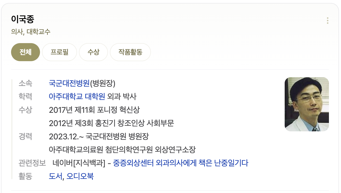 환자 치료에 대한 변함없는 헌신과 열정으로 여전히 의료 현장과 공공의료 시스템에서 큰 역할을 하고 있는 이국종 교수, 그의 진정성 있는 행보는 드라마뿐만 아니라 현실에서도 많은 사람들에게 귀감이 되고 있습니다.