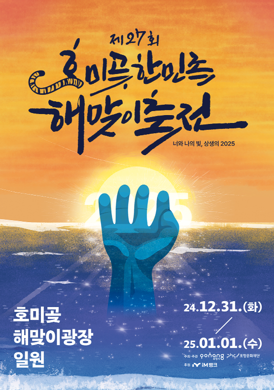 포항 호미곶은 울주 간절곶과 함께 한반도에서 가장 빨리 해가 뜨는 곳으로 유명한 대표적인 새해맞이 장소입니다. 포항 호미곶 한민족해맞이 축전은 매년 12월 31일부터 1월 1일까지 이틀간 진행되며, 독창적인 프로그램으로 호미곶을 널리 알리는 데 기여해 왔습니다.