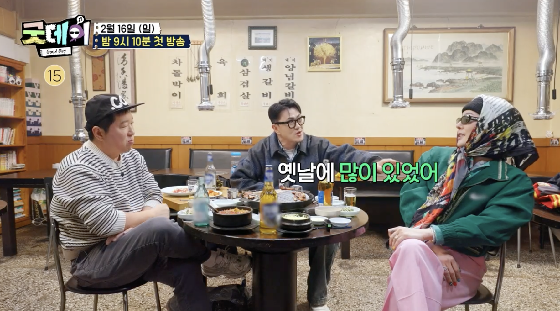 굿데이가 더욱 주목받는 이유는 바로 지드래곤과 정형돈의 만남 때문입니다. 두 사람은 2014년 무한도전에서 '형용돈죵'으로 큰 사랑을 받으며, 연말 시상식에서는 베스트 커플상을 수상할 정도로 환상의 호흡을 보여줬습니다. 당시 패셔니스타 지드래곤의 스타일을 정형돈이 위트 있게 지적하는 장면은 팬들에게 큰 웃음을 선사하며 전설적인 케미를 만들어냈죠.