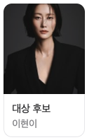 - 이현이 : 골 때리는 그녀들과 동상이몽2에 출연하며 활약했으나, 다른 후보들에 비해 임팩트가 약하고, 메인 MC로 활약하는 작품이 없다는 점 때문에 대상 수상은 다소 어려워 보입니다.