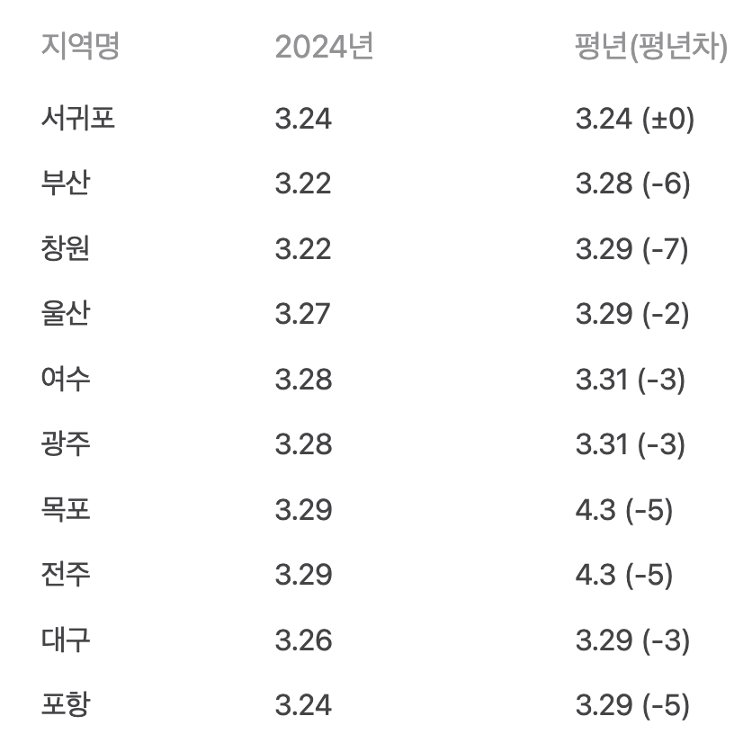 2025년 전국 지역별 벚꽃 개화 시기