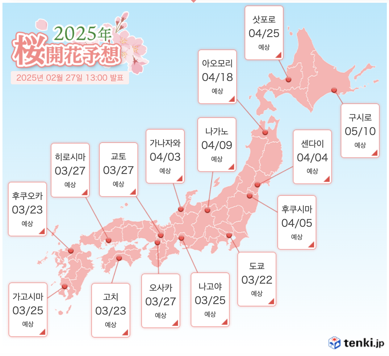 2025 일본 벚꽃 개화시기